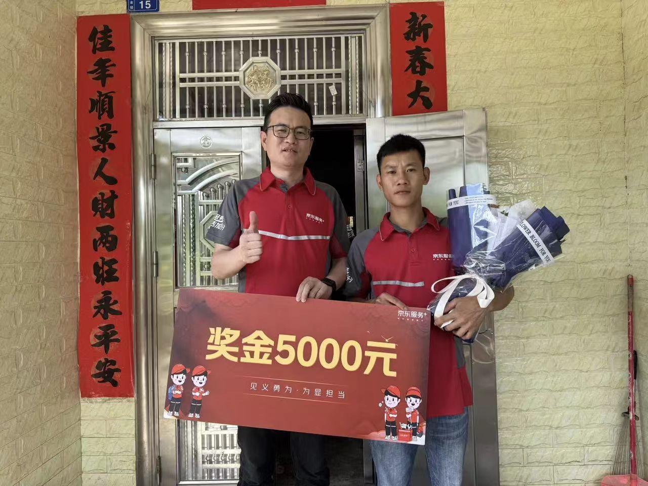 京东物流为朱喜林(右)颁发“见义勇为特别奖励”。