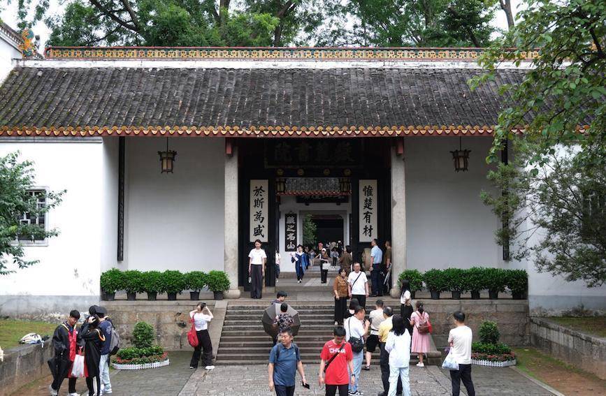 书院门上,穿越时空的八字楹联——“惟楚有材,于斯为盛”吸引众多游客,打卡拍照,其反映的正是岳麓书院对湖湘人才的培养造就之功,也是湖湘文化大放异彩的真实写照。