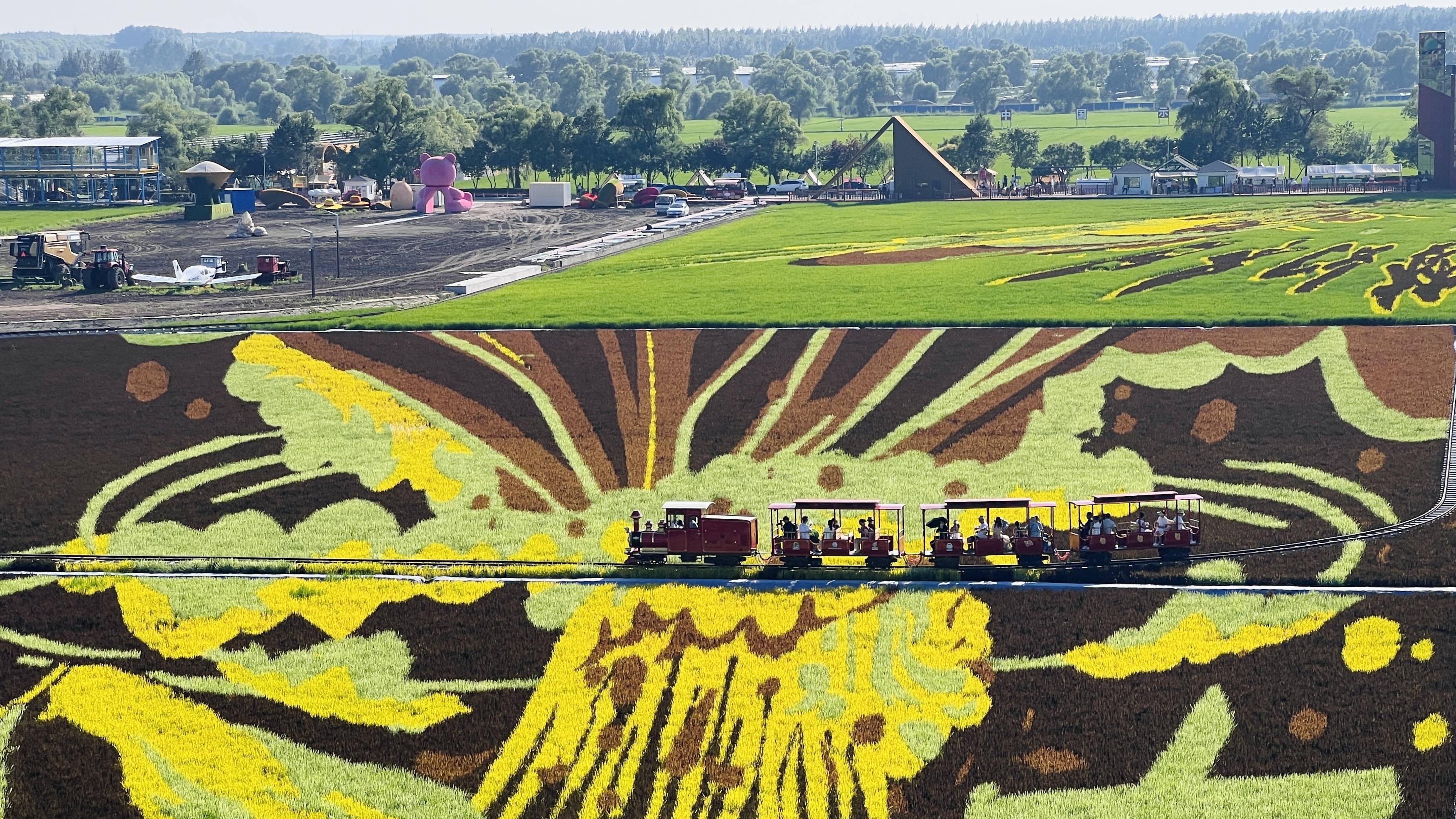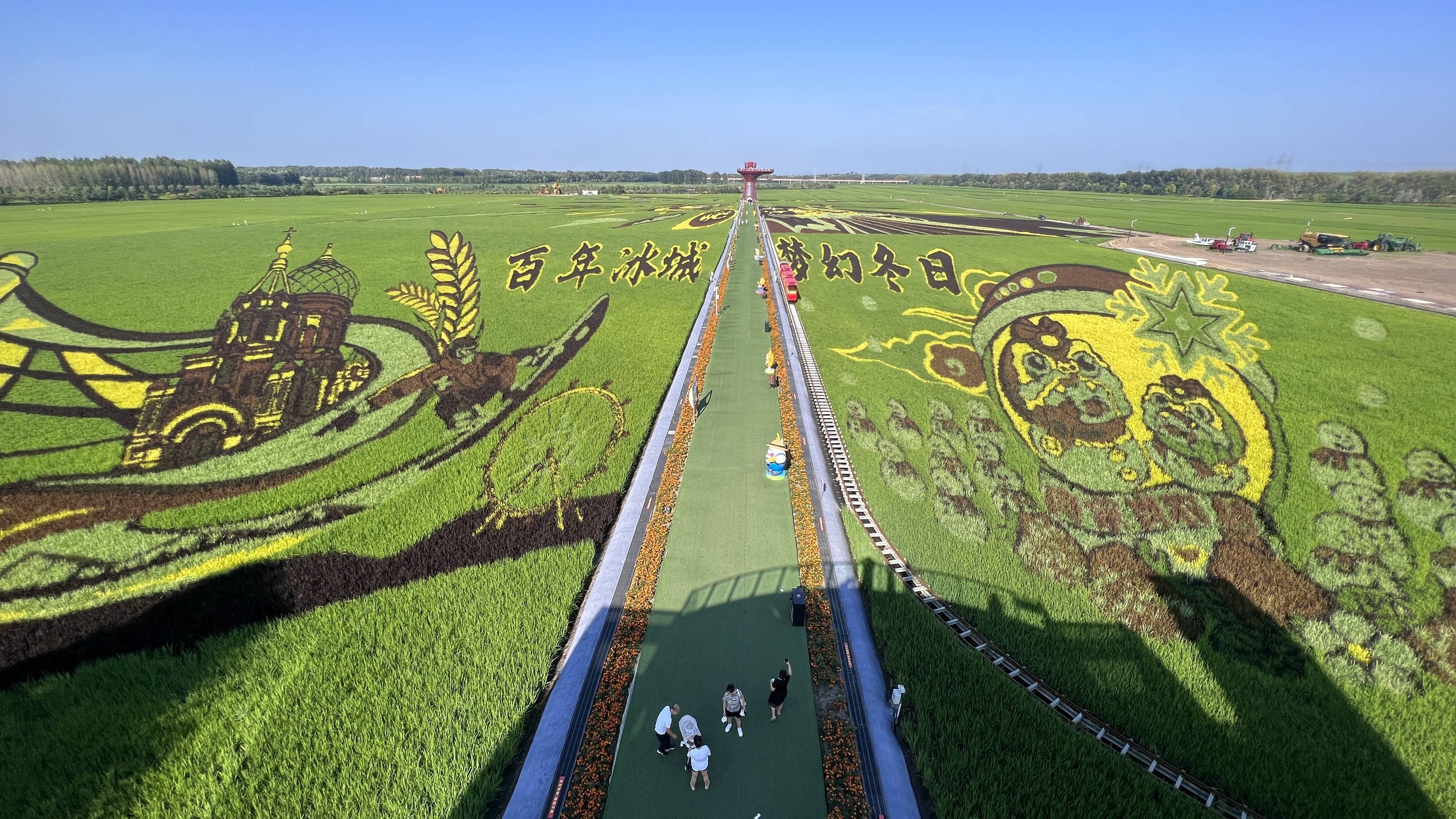 站在观光塔的玻璃栈道上极目远眺,一幅幅绚丽多姿的田园画卷在脚下徐徐铺展——百年冰城冰雪画卷尽显冰城魅力,四季生态画卷演绎着四季浪漫;后羿射日、女娲补天、神笔马良这些经典神话在稻田中焕发新生,与多彩的稻浪共同演绎着中华文明的永恒魅力。这些稻田画不仅将哈尔滨独特的文化符号与中国传统文化相结合,更彰显了农业与科技融合的魅力。