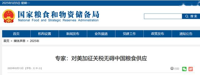 专家:对美加征关税无碍中国粮食供应——国家粮食和物资储备局