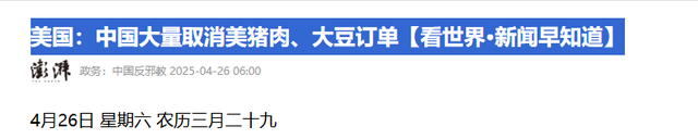 美国:中国大量取消美猪肉、大豆订单【看世界·新闻早知道】——澎湃新闻