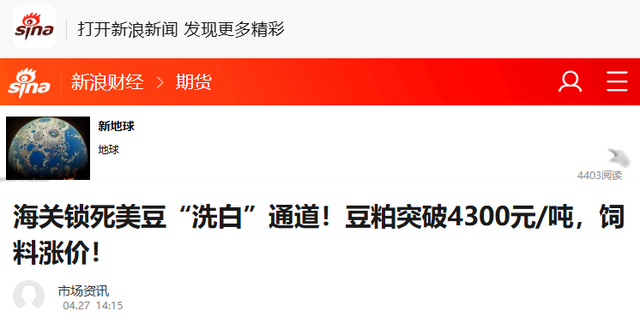 海关锁死美豆“洗白”通道!豆粕突破4300元/吨,饲料涨价!——新浪财经