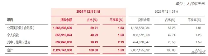 与此同时,其信用卡透支贷款余额也持续下滑,从2021年的4523.5亿元降至了2024年的3928.5亿元,占个人贷款比重从22.37%降至18.44%。