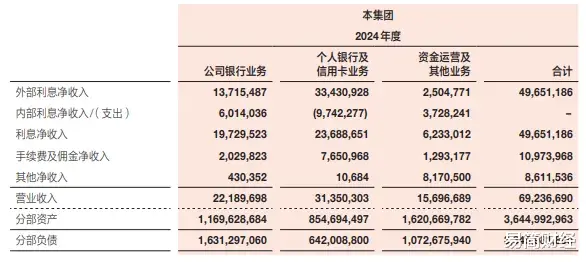 2024年,其公司银行业务同比减少约6.52亿元,个人银行及信用卡业务大降61.2亿元,资金运营及其他业务增长63.3亿元。