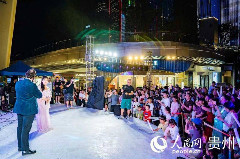 夏夜微风,贵阳观山湖区悦然时光广场人声渐沸。中文歌曲《月亮代表我的心》唱响,演唱者是一位英国音乐剧演员。